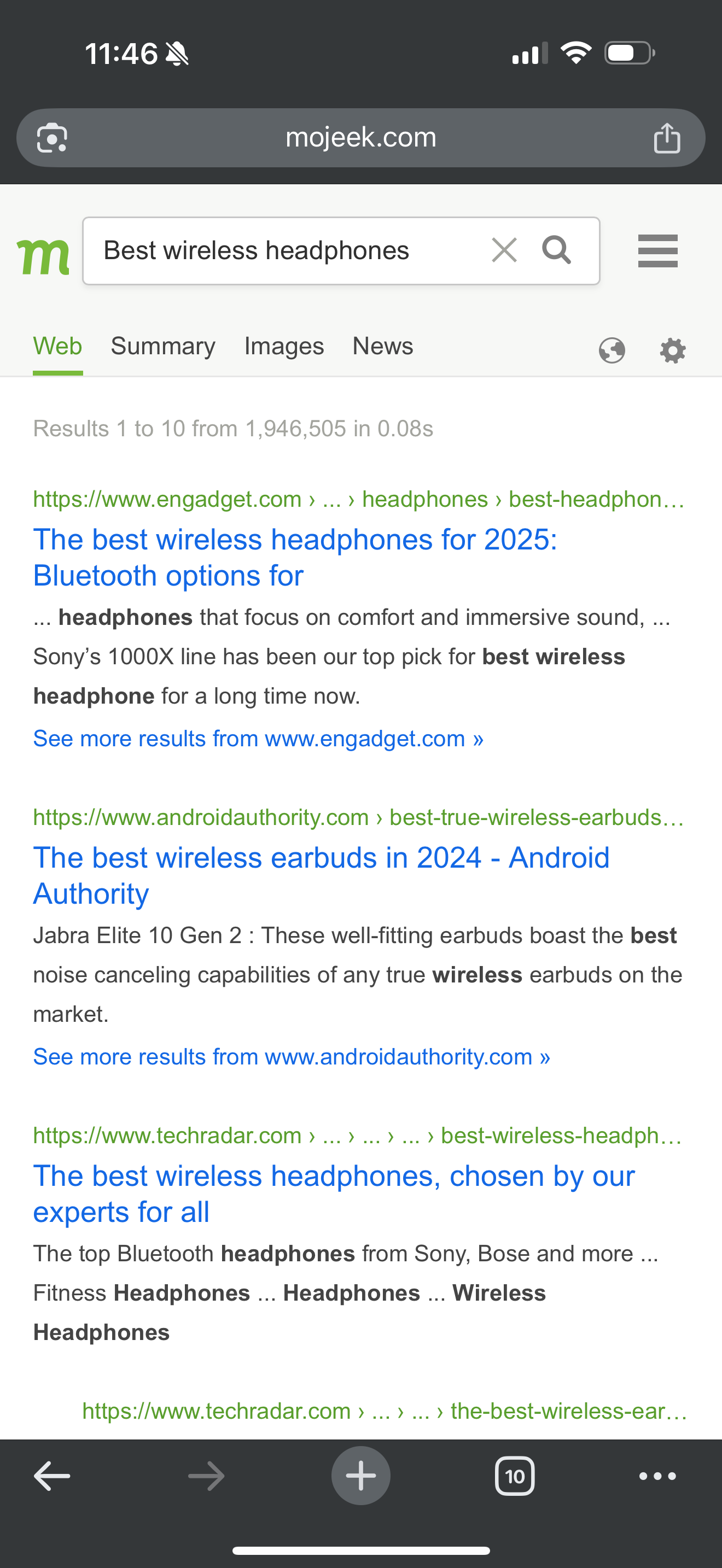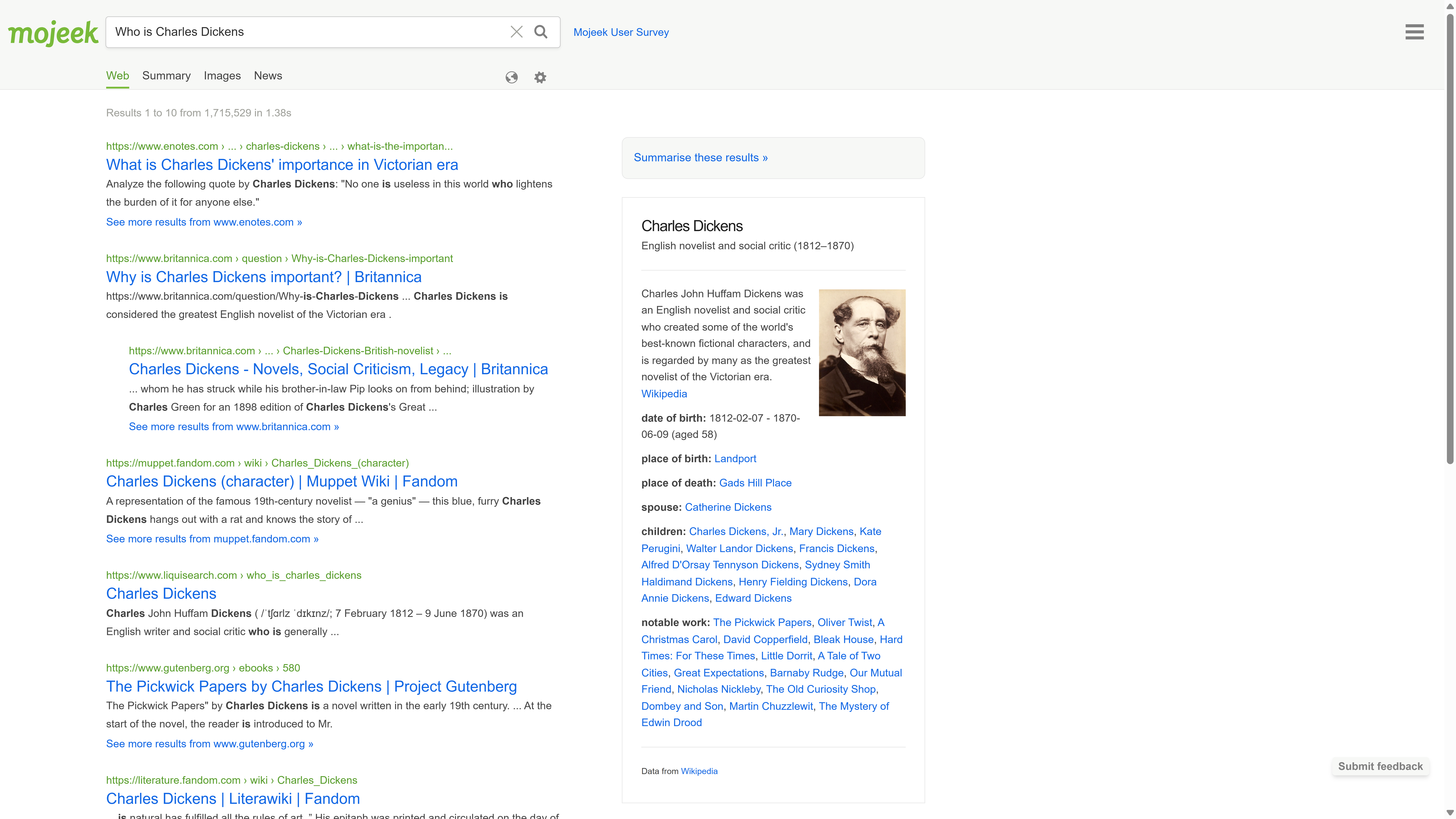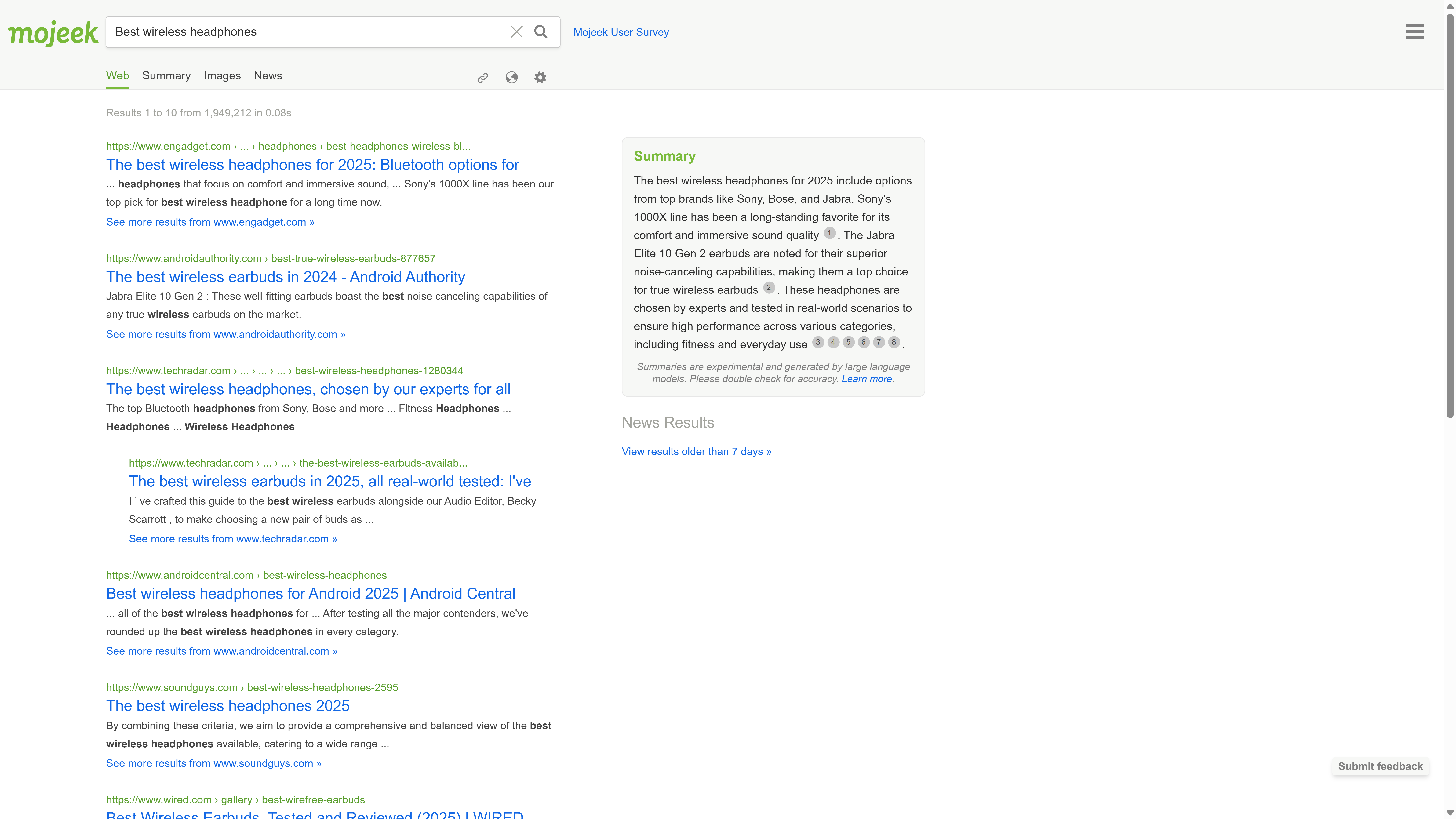 Optional AI summary provided for certain queries